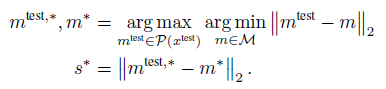 한 장의 test image $x^{test}$에 대한 image anomaly score(s)를 도출하기 위해 patch collection $\mathcal{P}(x^{test}) = \mathcal{P}_{s,p}(\phi_j(x^{test}))$에 있는 test patch feature와 memory bank에 있는 each respective nearest neighbour $m^*$의 maximum distance score $s^*$를 구한다.